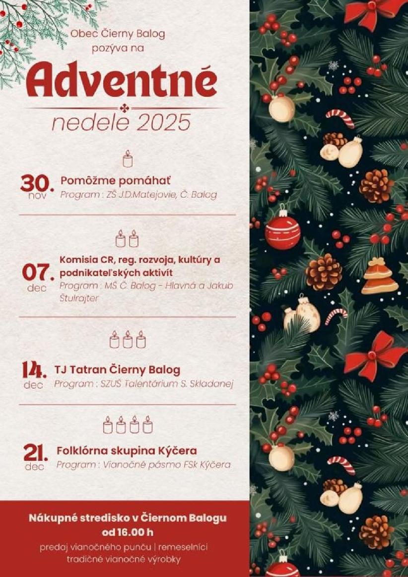 Obec Čierny Balog vás pozýva na Adventné nedele 2025.