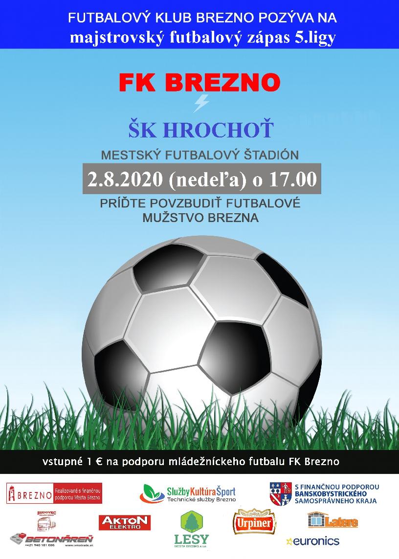 Futbalový klub Brezno Vás pozýva na majstrovský futbalový zápas 5.ligy FK BREZNO - ŠK HROCHOŤ.